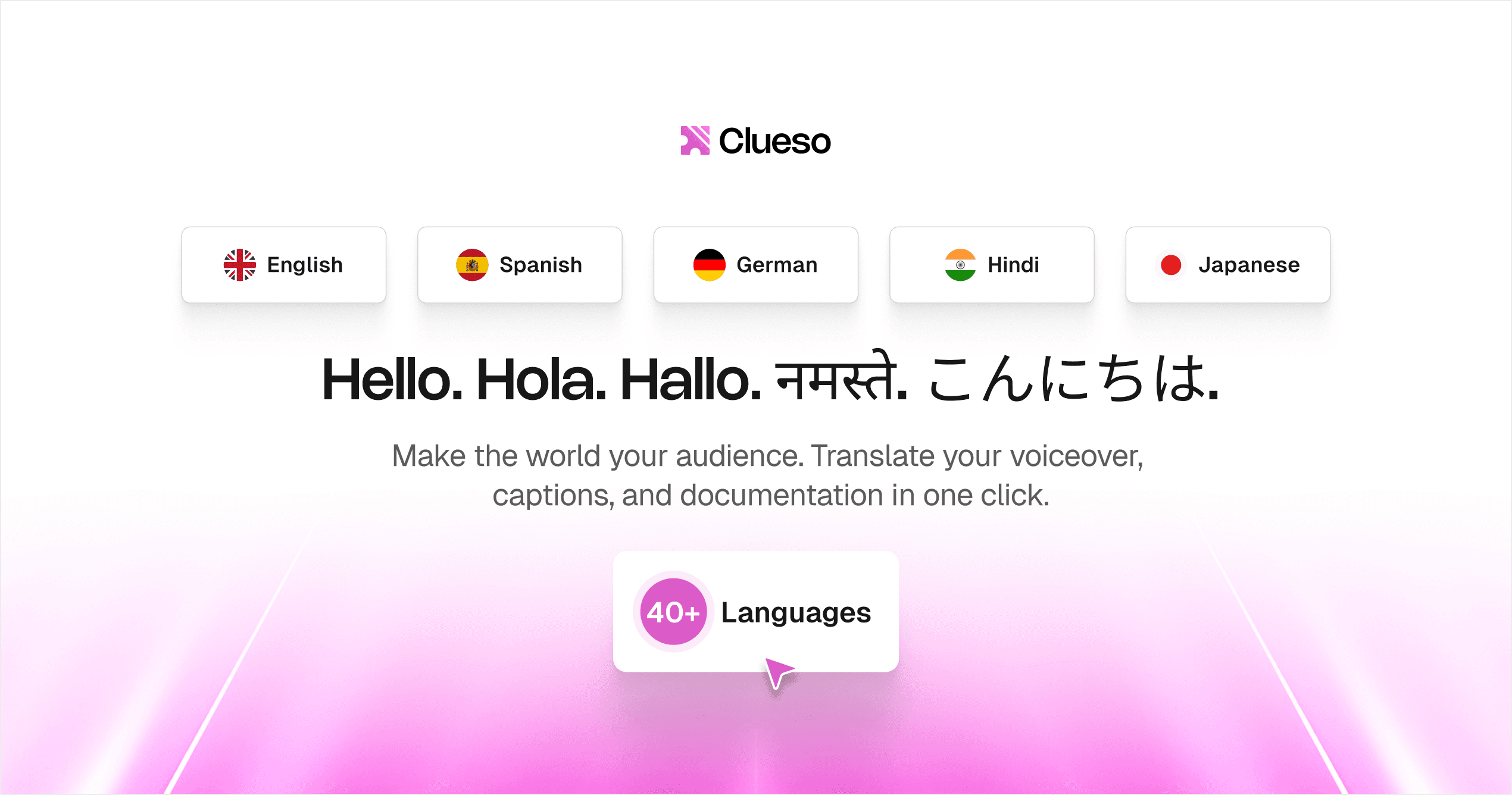 📌 Clueso makes accessibility effortless. Dynamic captions keep your content clear and readable. Worried about video localization? Clueso can also translate your videos, captions and docs into 20+ languages in just a click.