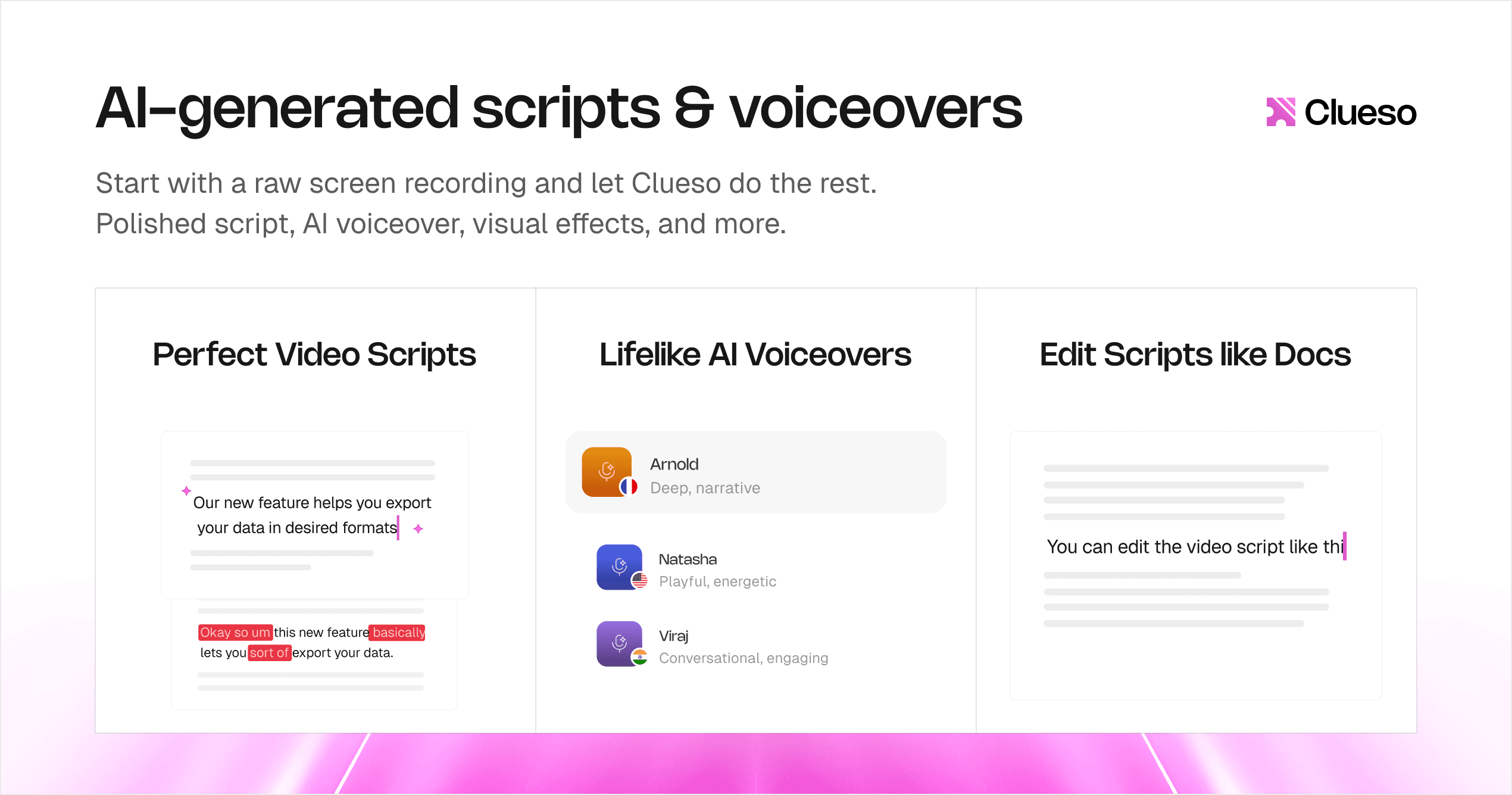 From AI voice-overs and smart brand templates to one-click publishing across platforms, Clueso cuts production time significantly. So the next time you launch a new feature, onboard a new user, or write a new doc, ask yourself: