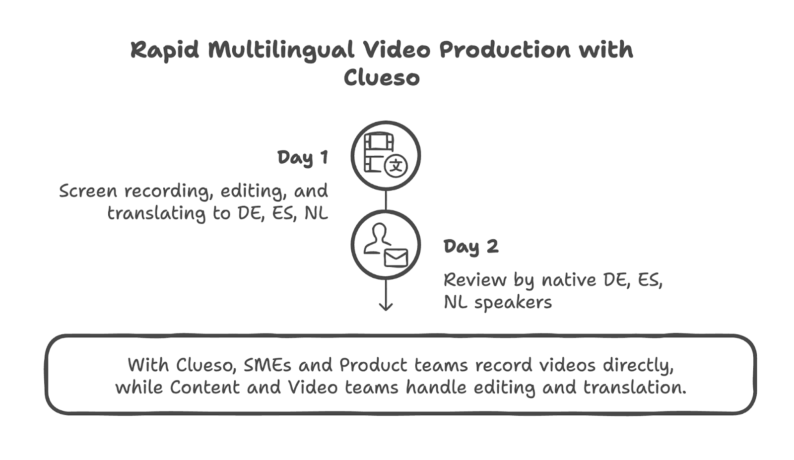 If you’re looking to streamline content creation, speed up translations, and maintain high-quality video consistency, we’d love to chat and help you learn how to cut multilingual video production time while creating engaging product videos with ease. Book a demo here or reach out to us at neel@clueso.io.