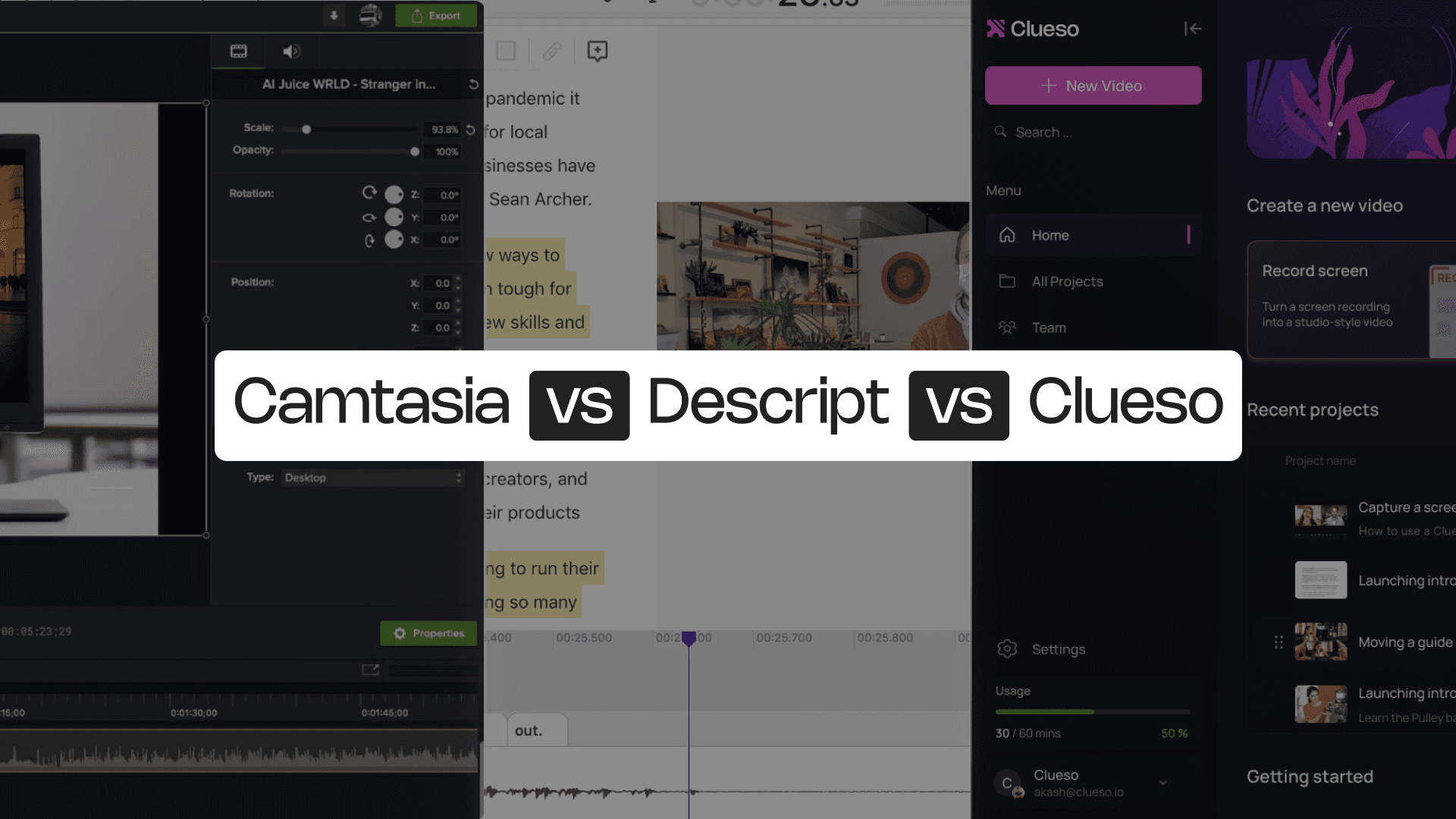 Camtasia vs Descript vs Clueso: 5 Reasons Why Clueso Is a Better Alternative